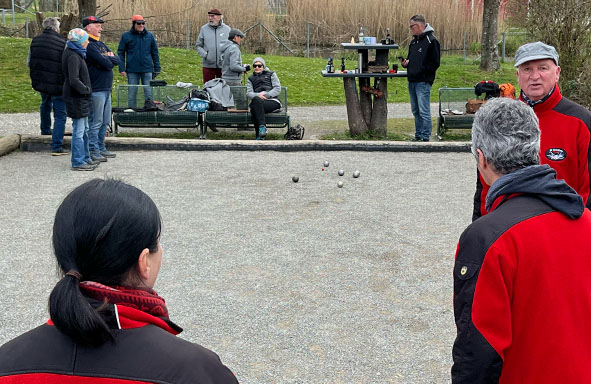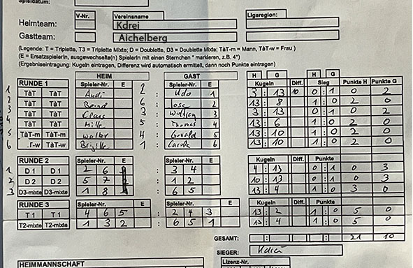 Mit einem Endstand von 21:10 begaben wir uns zum gemütlichen Teil des Treffens. Spielten weiter Doublette und Triplette, lobten noch mehrmals den Kuchen, freuten uns über das schöne Wetter und gegen 18.00Uhr verabschiedeten wir unsere Gäste. Was für ein schöner Nachmittag. Sobald es wärmer wird, laden wir das Aichelberger Team gerne nochmal zum Grillen ein… Herzlichen Dank für euren Besuch.