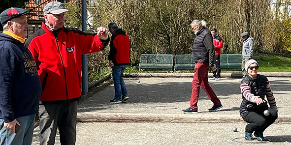 ….wollten wir mit unseren Aichelberger Boulefreunden einen schönen Boulenachmittag verbringen. Wir haben das Aichelberger Team auf Kaffee, Kuchen und andere Erfrischungsgetränke zu uns in die Krautgärten eingeladen. Nebenbei wollten wir natürlich auch Boule spielen. Im Pokal-Modus spielten wir 6xTête, 3x Doublette und 2x Triplette. Alle Spiele gingen wie immer bis zum 13 Punkt. Manchmal gewannen die Aichelberger, manchmal Kdrei. Die Kuchen wurden von allen gelobt. Nach den Têtes hatte Kdrei mit 8:4 die Nase vorn. Nach den Doublettes schrumpfte der Abstand auf 11:10. Ein Triplettesieg würde Kdrei reichen, Aichelberg benötigt 2 Siege für den Gesamtsieg. Das war dann schon wieder spannend. Auch hier wollen wir nochmals erwähnen, dass die Kuchen von allen gelobt wurden. Am Ende konnte Kdrei auch beide Triplettes gewinnen und nochmals die leckeren Kuchen loben.