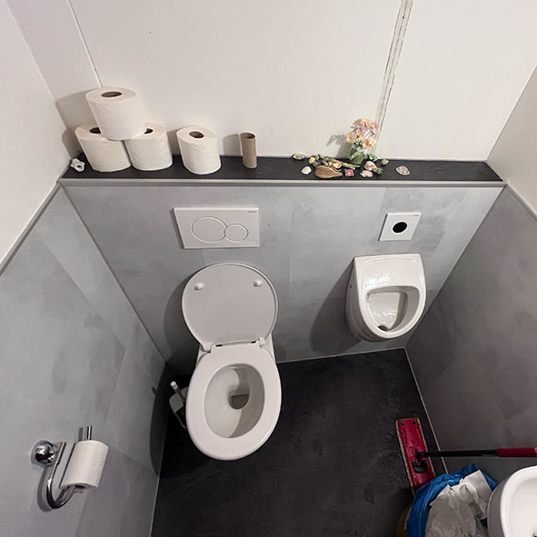 …nicht an den Ligaauftakt. Trotzdem hat es damit zu tun. Unsere Boulefreunde in Reutlingen haben in ein neues WC investiert. Feinstes Steinzeug, anspruchsvolle Elektronik und fliessendes Wasser. Was braucht der Mensch mehr? Herzlichen Glückwunsch zur neuen Toilette und herzlichen Dank für den Arbeitseinsatz und die Investition.