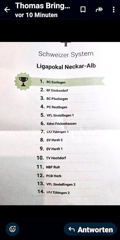 Glückwunsch an den Ligapokalsieger aus Esslingen.