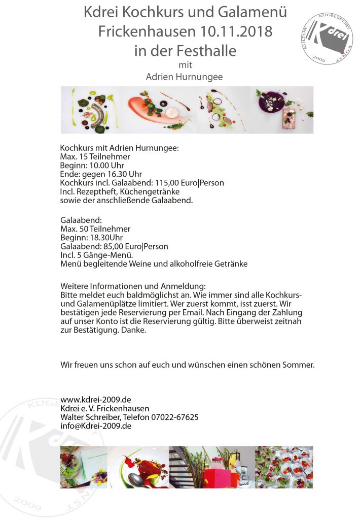Kochkurs und Galamenü 2018